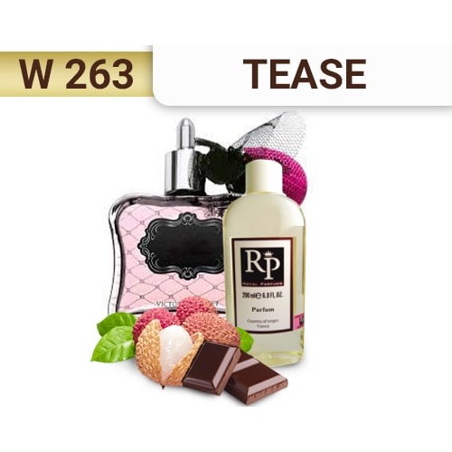 «Tease» - это переосмысление популярного аромата «Sexy Little Things Noir Tease», которое получилось еще более ярким, сочным и многогранным. Парфюм принадлежит семейству цветочные фруктовые. Основные аккорды этих духов – белоцветочный, сладкий, фруктовый. В этом аромате парфюмеры сделали ставку на фрукты и цветы со сладким и даже пудровым вкусом.